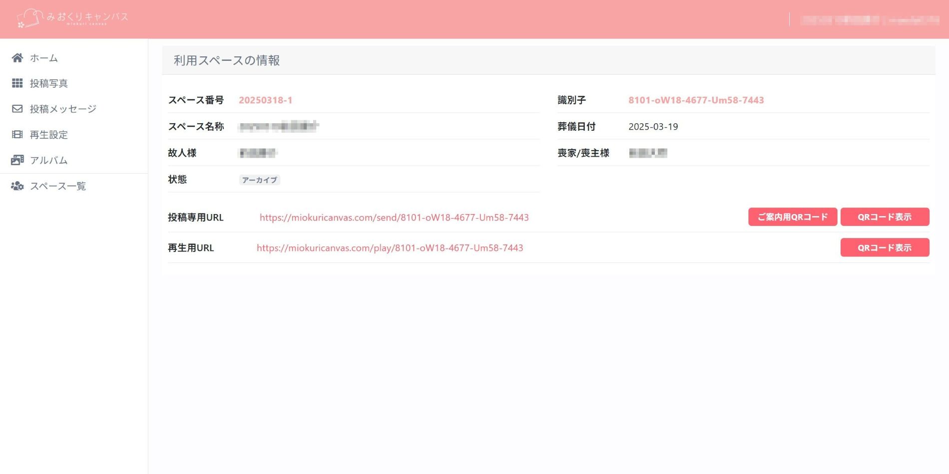 故人様ごとに専用の投稿用URLが発行されます。そのURL(2次元コード)を喪家より親戚・ご友人となどへ案内・拡散します。