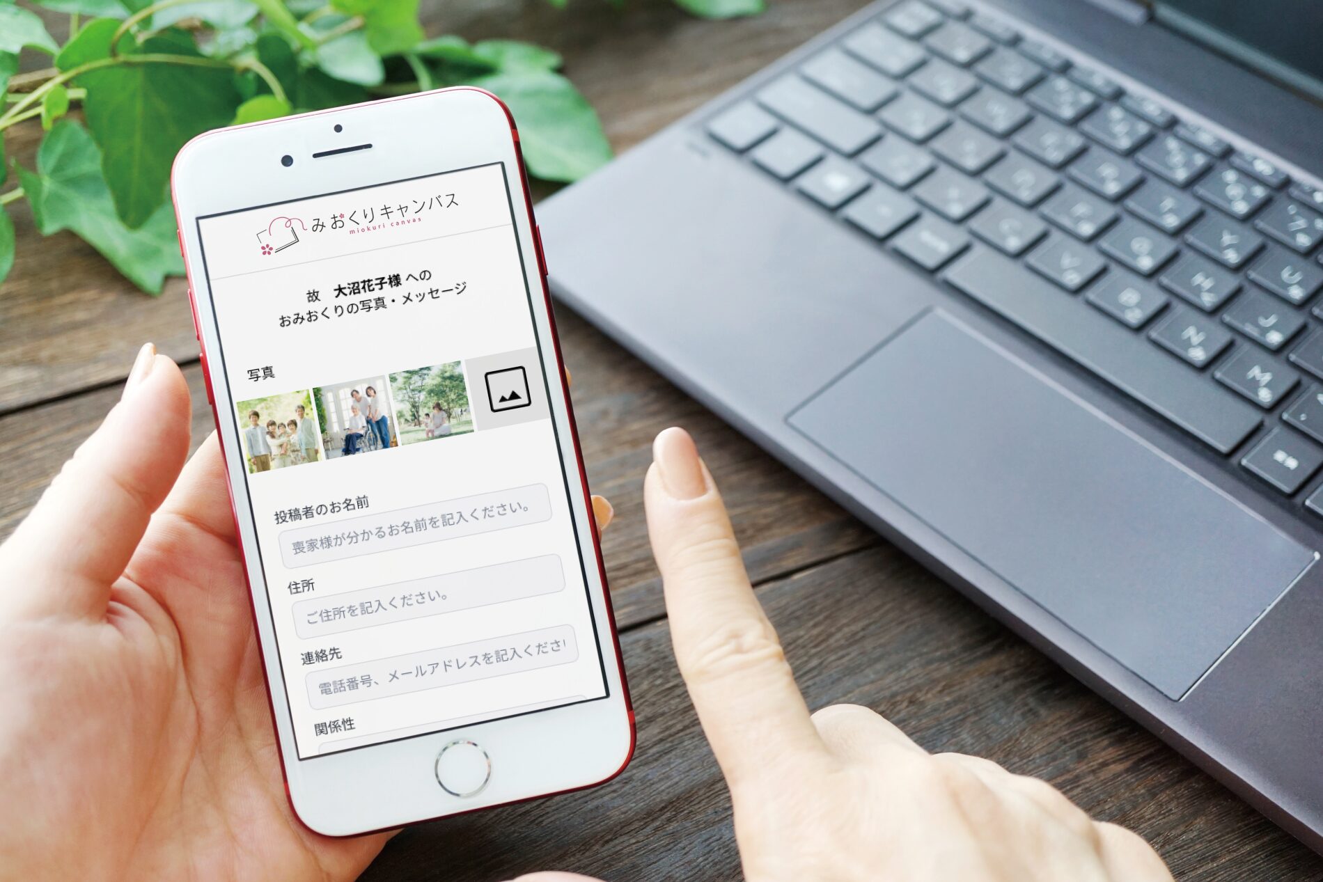 投稿専用URLにアクセスして、思い出の写真やメッセージを投稿していただきます。